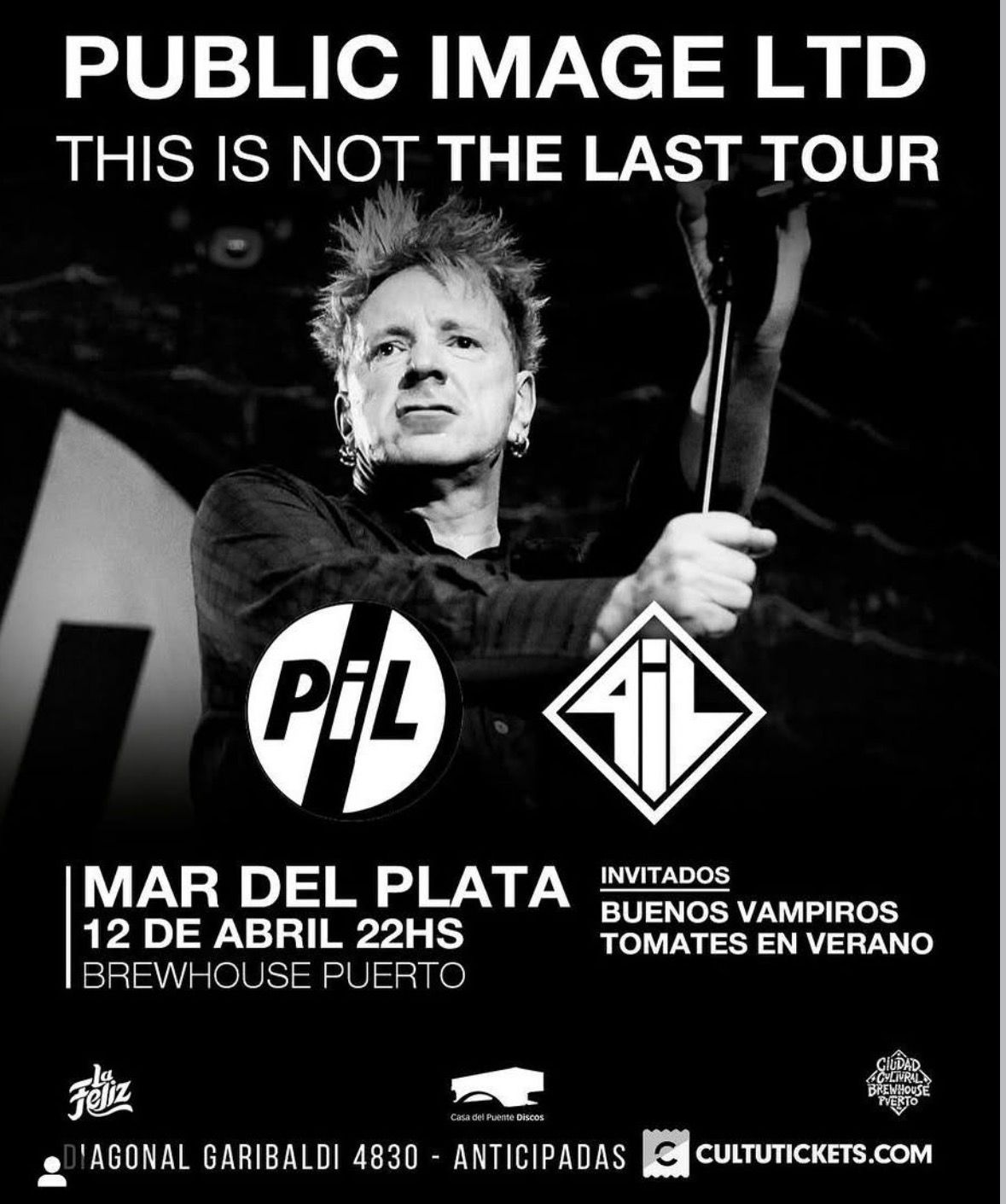 En el marco de su nueva gira mundial “This is Not the Last Tour”, PiL se presentará en C Art Media, Buenos Aires, el próximo 11 de abril de 2026, con la potencia de John Lydon al frente y la incorporación del baterista Mark Roberts. Será una oportunidad histórica para vivir en vivo a una banda que acumula 5 singles y 5 discos en el Top 20 del Reino Unido, y que sigue sorprendiendo con cada paso.