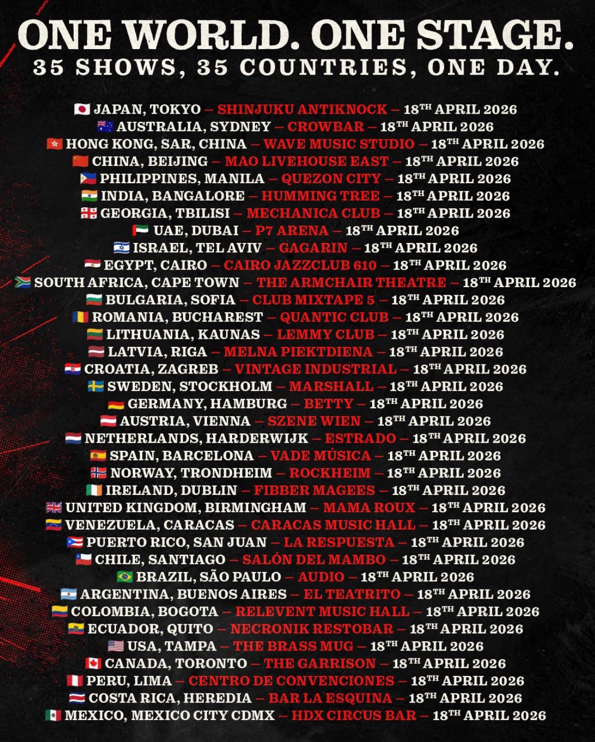 Bajo el nombre «Un Mundo, Un Escenario», la iniciativa propone una celebración global del underground, creando una serie continua de eventos que cruzan zonas horarias.